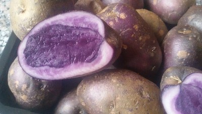 Questo mese vi presento non un piatto tipico peruviano, ma un prodotto che identifica la mia terra di origine e che tutto il mondo conosce: la patata, in particolare quella a polpa e buccia viola. Le patate hanno origine sulle Ande in Perú, al confine con la Bolivia, e vicino al lago più alto al mondo, il Titicaca, posto a 3.800 metri sul livello del mare. Oltre 8.000 anni fa, furono rese commestibili da contadini andini partendo di varietà selvatiche. Ci sono molte leggende che ne descrivono l’