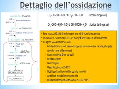 Pubblichiamo questo mese la seconda parte dell'approfondimento sull'aceto.   Metabolismo dell’etanolo e processi di acetificazione.  L'ossidazione acetica dell'etanolo è piuttosto semplice.  CH3CH2OH (etanolo o alcool etilico)+O2 ---àCH3COOH (acido acetico) +H2O  Per effetto della reazione si ottiene una molecola di acido acetico (PM = 60) da una molecola di etanolo (PM = 46) con un rendimento teorico del 130%, anche se in realtà la resa reale è del 95% quindi da un vino di 10 % (vol.) di alcool