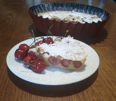 Questo mese vi presento il clafoutis, dolce della tradizione francese e legato alla mia infanzia perché nata e cresciuta a Parigi. Lo preparava la mia mamma in questa stagione, a volte usava anche l’uva, ma era sempre una immensa gioia quando lo cucinava; è una parte di me, della mia infanzia e della mia vita. Ora, diventata grande, continuo a prepararlo per la mia famiglia. Il clafoutis è veramente semplice da fare, gustoso, profumato ed è sempre molto apprezzato. La riuscita di questo dolce è