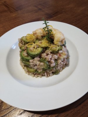 Farro della Garfagnana con zucchine e gamberi - Cristina Poncet Mazzanti